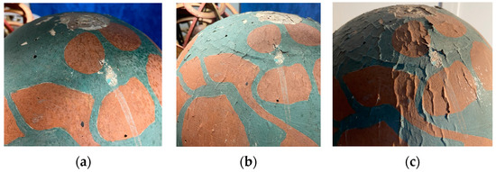 In 2022, an alarming sign of deterioration was observed in a painted wooden Model of Mars housed in the Specola Museum in Palermo. This 19th-century artefact was displayed inside a showcase in the “Merz Hall” for approximately 20 years without any evident deterioration sign. However, in 2021, the object began to show accelerated damage, with noticeable flaking of its pictorial layers (Figure 1). The damage was due to a lower relative humidity (RH), which generated internal stresses and cracking and swelling of the paint. Along the cracks, some fragments of the pictorial layer lost their cohesion and generated flaking.