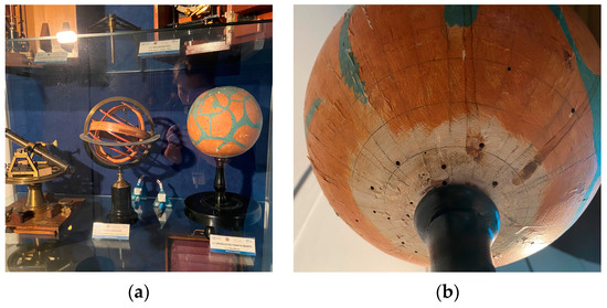 (a) The Model of Mars inside the display case in the Merz Hall; (b) a detail of the lower part of the Model.