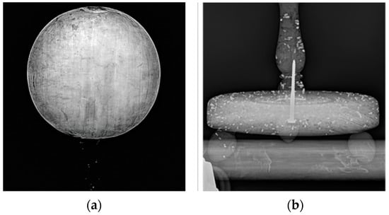 X-ray radiography was performed by a private company, S.T.Art-Test di S. Schiavone & C. S.A.S (Caltanissetta, Italy), using a portable radiographic system consisting of a Poskom X+ PXP-100 CA portable X-ray tube (40 to 110 kVv range) and an AGFA DR 14e radiographic plate with an amorphous silicon TFT detector (150 µm pixel pitch, 2336 × 2836 active matrix, 430 mm × 350 mm active area). Using this setup, 16-bit images with a minimum spatial resolution of 3.36 lp/mm were acquired and displayed instantly on a dedicated laptop with MUSICA software. The images were acquired by rotating the object at various angles to reveal details that could be missed in a single exposure due to the two-dimensional projection. The X-ray tube parameters were optimized, with the pedestal examined at 50 kV and 50 mAs, and the Model at 90 kV and 50 mAs. The higher voltage for the Model was necessary due to the wooden support’s thickness and the paint layers’ high radiopacity. The data were processed using dedicated software with the application of reconstruction algorithms (image hardening and softening) to highlight structural details and enhance the varying densities (in terms of photon absorption) of the materials in the object [44,45].