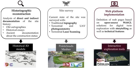 This paper presents a method to digitally document the current state and the construction history of a cultural heritage site with limited accessibility, developing a web interactive platform for 3D exploration. The workflow consists of the following phases (Figure 4):