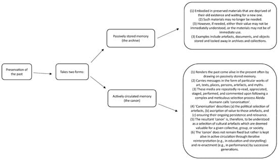 - Assmann, A. Canon and Archive. In Cultural Memory Studies: An International and Interdisciplinary Handbook; Erll, A., Nuenning, A., Young, S.B., Eds.; Walter de Gruyter: Berlin, Germany, 2008; pp. 97–107. [Google Scholar]