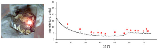 - Costa, M.; Arruda, A.M.; Dias, L.; Barbosa, R.; Mirão, J.; Vandenabeele, P. The Combined Use of Raman and Micro-X-Ray Diffraction Analysis in the Study of Archaeological Glass Beads. J. Raman Spectrosc. 2019, 50, 250–261. [Google Scholar] [CrossRef]