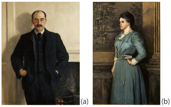 (a) Rudyard Kipling (1865–1936), by The Hon. Jon Collier (1850–1934), 1900 © National Trust Images/John Hammond and (b) Caroline Starr Balestier, Mrs. Rudyard Kipling (1862–1939), by Sir Philip Edward Burne-Jones (1861–1926), 1899 © National Trust Images/John Hammond.