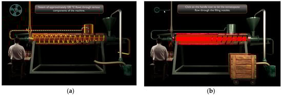 The focus of the evaluated AR application is on illustrating how the pasteurization-filling machine works, making visible its “invisible” parts. Moreover, the correlation between the natural museum environment and the virtual environment of the application was carried out so that the virtual representation of the pasteurization machine was juxtaposed with the real one in the exhibition space. The AR app is on a pad/tablet mounted on a stable base in front of the specific exhibit.