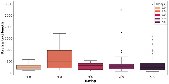 Finally, although “Excellent” reviews are the most numerous, they display an intermediate average length of 345 characters. However, this category also includes pervasive narratives, up to 2988 characters, underscoring that the most satisfied visitors sometimes take the time to narrate their memorable visit in detail. The outliers observed for the higher ratings confirm this trend towards exhaustive accounts when the experience is wildly appreciated.