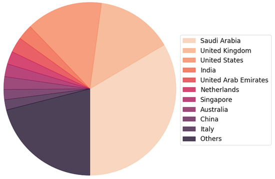 Looking at the data processing, a 14.69% rate of missing values for visitor nationality emerges. Despite this limitation, the overall understanding of the audience remains intact, highlighting the predominance of local visitors from Saudi Arabia (33.49%). Although the country promotes international cultural tourism, data demonstrate that the most relevant part of the visitors (quantitatively) is represented by local (domestic) as Saudi citizens or foreign permanent resident citizens (Figure 6).
