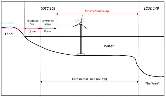 To assess the threats facing the archaeology of the continental shelf, several sources of international law must be consulted. These include general principles of international law, the 1982 United Nations Convention on the Law of the Sea (LOSC or UNCLOS [88]), and the 2001 UNESCO Convention on the Protection of the Underwater Cultural Heritage [89]. Various legal experts have discussed the different aspects and shortcomings of these pieces of legislation in both international [50,82,87,90,91] and national contexts (e.g., [92]). One area of concern is what Sarah Dromgoole describes as an effective ‘jurisdictional gap’ [82]. In essence, the situation is as follows. The 1982 UN Convention on the Law of the Sea divides oceans into three maritime zones, which are afforded different legal regimes under international law. These are ‘Territorial Seas’, ‘the Contiguous Zone’, and the ‘Area’.