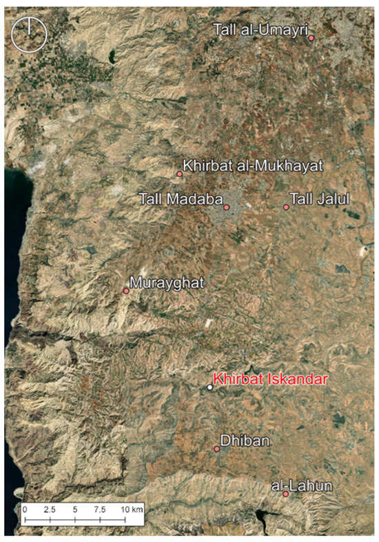 - D’Andrea, M.; Richard, S. Missione Archeologica a Khirbat Iskandar, Giordania: Risultati recenti e obiettivi futuri. In Egitto e Vicino Oriente Antico tra Passato e Futuro. Atti del Terzo Convegno EVOA, Roma 30 giugno–1 luglio 2022; Cereti, C.G., Ed.; Scienze dell’Antichità 29.3: Roma, Italy, 2023; pp. 95–106. [Google Scholar]