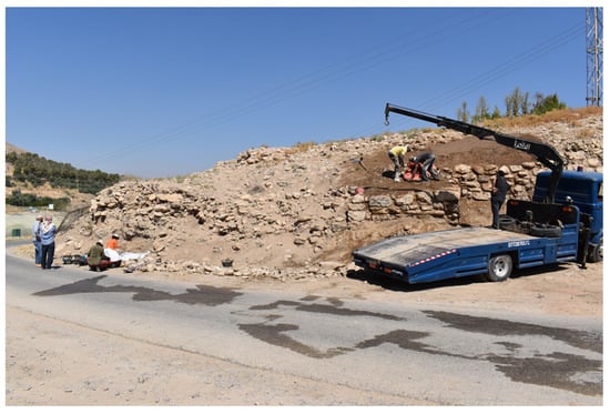 - Homès-Fredericq, D. Protection and Promotion of the Archaeological Site of al-Lāhūn: A Technical Study. In Studies in the History and Archaeology of Jordan 11; Department of Antiquities of Jordan: Amman, Jordan, 2013; pp. 221–230. [Google Scholar]