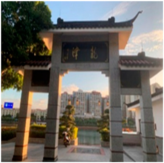 Fuxing Bridge is located above the Zhongxin River in Erlonggang Village, Shuntian Town, Dongyuan County. It was first built in the first year of the Daoguang reign in the Qing dynasty (1821) and was completed in the 13th year of the Daoguang reign in the Qing dynasty (1833). Running southwest–northeast, it is a double-arched stone bridge that used to be the only connection between Zhongxin and Heyuan. The bridge is 49.6 m long and 8.4 m wide. It is comprised of mainly red sandstone slabs, with railings, red sandstone balusters, and breast boards made of rammed earth. Two red sandstone plaques with inscriptions (“Firm Rock” and “Peace & Welfare”) are set in the center of the two balustrades. The bridge is now covered with concrete (Figure 44).