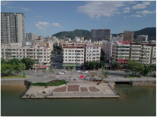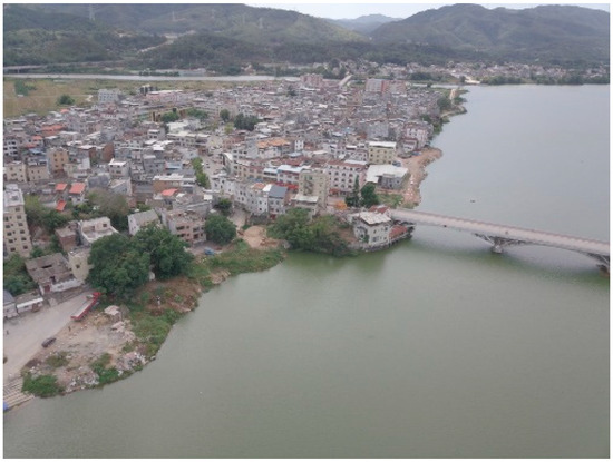 The Nanhu ancient town (23°754.01336′ N, 114° 738.72153′ E) was the largest, with many Hakka-enclosed compounds and other buildings through which the Guangdong–Jiangxi Highway passed. The Xichang ancient town (23°750.07823′ N, 114°726.39130′ E, Figure 45) resided on one side of the Xinfeng River. The Huilong ancient town (23°751.0879′ N, 114°737.3729′ E, Figure 46) spread on both sides of the Xinfeng River. The Guling ancient town (23°245.5820′ N, 114°730.14899′ E, Figure 47) was located at a turn of the Guling watercourse. The Lixi ancient town (23°749.86172′ N, 114°725.77320′ E, Figure 48) was located in a valley, with its buildings spreading from the bottom toward the mountain side. All these ancient towns were connected by the country lanes around them (Figure 49).