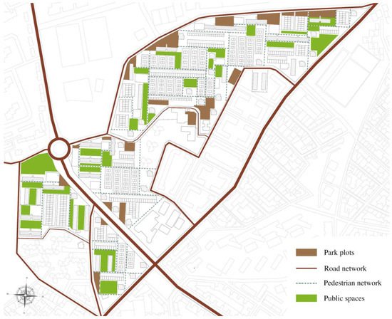 - Calvo del Olmo, J.M. El espacio público como elemento estructurante del proyecto urbano. Una mirada retrospectiva hacia el poblado dirigido de Caño Roto. In Poblado Dirigido de Caño Roto; Cánovas, A., Ed.; Centro de Estudios y Experimentación de Obras Públicas: Madrid, Spain, 2013; pp. 156–165. [Google Scholar]