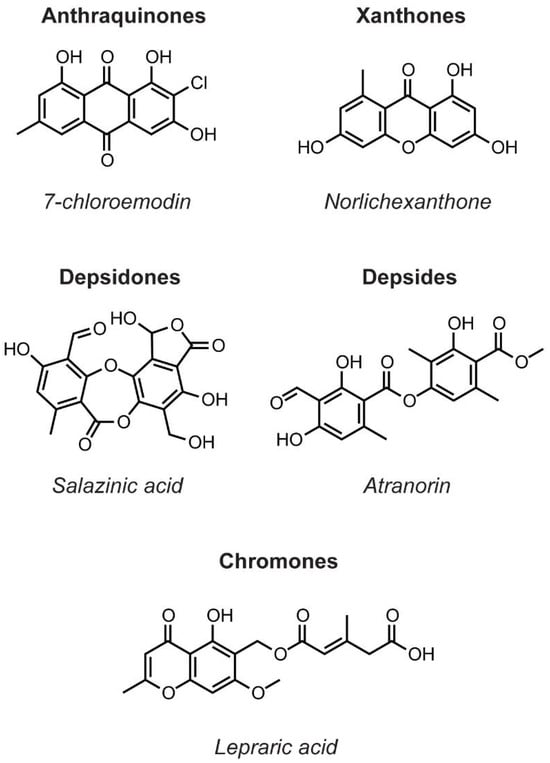 - Schweiger, A.H.; Ullmann, G.M.; Nürk, N.M.; Triebel, D.; Schobert, R.; Rambold, G. Chemical Properties of Key Metabolites Determine the Global Distribution of Lichens. Ecol. Lett. 2022, 25, 416–426. [Google Scholar] [CrossRef] [PubMed]