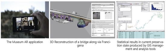 - Germanó, G. Diachronic 3D Reconstruction of a Roman Bridge: A Multidisciplinary Approach. In Digital Restoration and Virtual Reconstructions: Case Studies and Compared Experiences for Cultural Heritage; Springer: Berlin/Heidelberg, Germany, 2023; pp. 185–201. [Google Scholar]