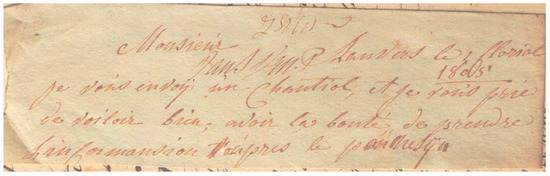 Delivery note, ‘Monsieur, Anvers le Florial 1800, Je vous envoy mon chantiol et je vous prie de vouloir bien avoir la bonte de prendre…’ (‘Antwerp, Floréal 1800, with this I send you my chantiol and I kindly ask you to accept…’).