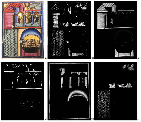 The illuminated manuscripts were investigated by means of different techniques over the years. However, being fragile and precious objects, they must necessarily be studied using non-destructive and non-invasive methods. Among them, imaging techniques, such as X-radiography [11], ultraviolet-induced luminescence (UVL) [12], and multispectral imaging (MSI) [13,14], are the most widely used for the characterisation of ancient manuscripts. More specifically, X-ray imaging techniques have been used to read ancient writing and for the in-depth investigation, thus revealing information related mainly to the book structure [11]. On the other hand, UVL and MSI have many applications in the recovery of faded or damaged texts or in the reading of palimpsests [15].