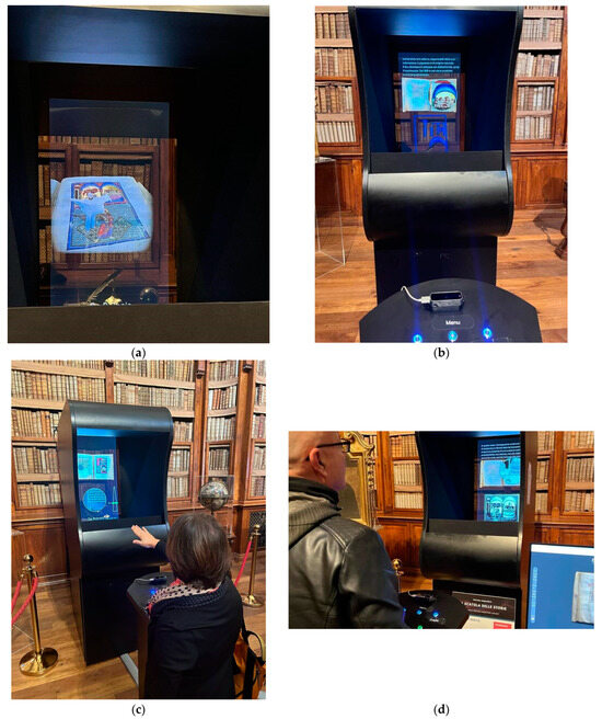 - Schettino, P.; Pietroni, E.; d’Annibale, E. Re-Thinking Visitor Experience with Ancient Manuscripts via the Holographic Showcase: The Case of the Codex4D Project and Its First Public Results from a Mixed-Method Evaluation In Situ. Heritage 2023, 6, 6035–6065. [Google Scholar] [CrossRef]