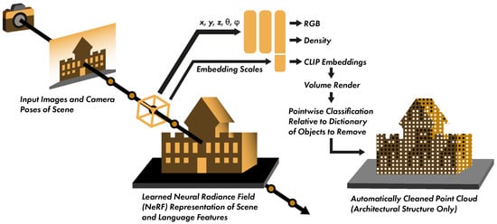 - Kerr, J.; Kim, C.M.; Goldberg, K.; Kanazawa, A.; Tancik, M. LERF: Language Embedded Radiance Fields. In Proceedings of the IEEE/CVF International Conference on Computer Vision, Paris, France, 2–6 October 2023. [Google Scholar]
