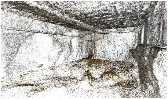 Point cloud of the 3D model of the empty room seen from a corner of the room.