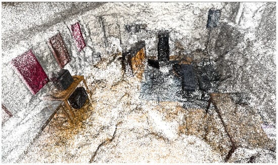 Comparing our point clouds strictly by distance measures does not fully illuminate the efficacy of our approach—in this case, a qualitative analysis can be useful. Since this is only a simulated case of privacy preservation (i.e., we have permission to publish images of 3D models of the building interiors with their contents), we have included example images of the generated point clouds below—specifically focusing on one of the rooms for simplicity (room 7 on floor 0).