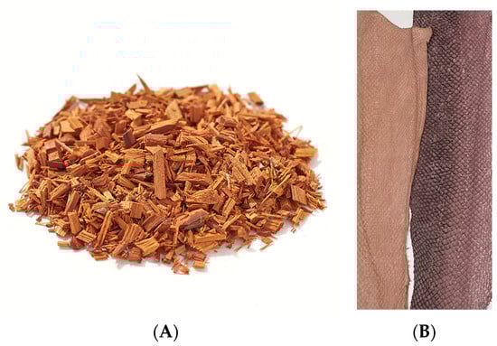Sappanwood (Biancaea sappan) (Figure 20A), a small tree belonging to the legume family and native to India, thrives in tropical regions. Its use as a natural dye in Japan traces back to ancient times, with records of its importation during the Nara period (710-784). During the Heian period (794-1185), sappanwood was highly prized for its ability to produce exclusive shades of red and purple, primarily reserved for the emperor and court nobles. Commoners, on the other hand, predominantly used indigo and earthy browns for their dyeing needs [39].