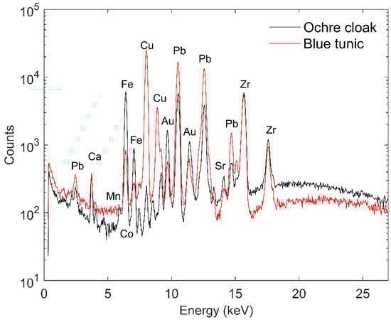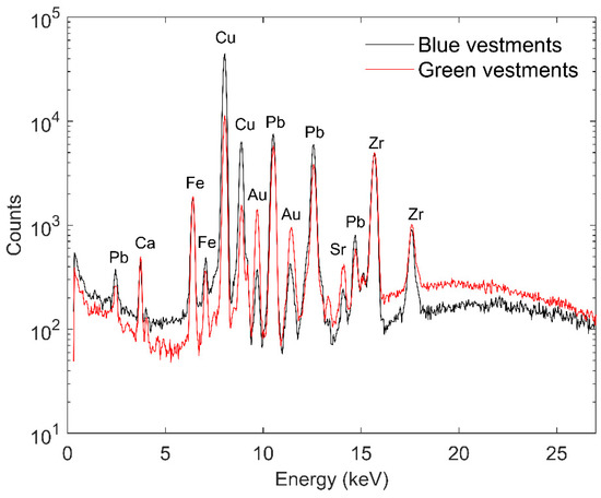 XRF spectra of blue and green vestments.