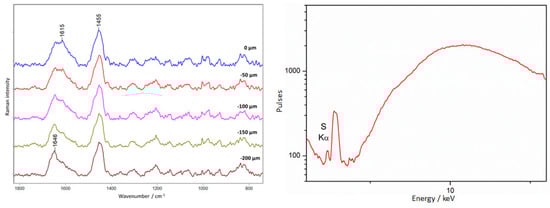 We have successfully applied this depth profiling procedure in previous studies [48]. The scanning profile is then made deep enough to determine whether amber is under the impregnation layer or whether the studied material was introduced as part of a restoration treatment. At the same time, it should be noted that this method is suitable only for the indicative determination of layer thickness.
