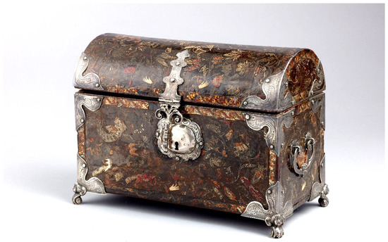 - Antonio, P. Still Life with an Ebony Chest. 1652. Oil on Canvas, 80 cm × 94 cm. St. Petersburg, Russia, The State Hermitage Museum, ГЭ-327. Available online: https://hermitagemuseum.org/wps/portal/hermitage/digital-collection/01.+paintings/32672 (accessed on 11 July 2024).