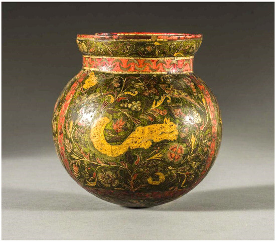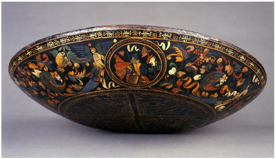 - Codding, M.A. The Decorative Arts in Latin America, 1492–1820: Lacquerwares. In The Arts in Latin America, 1492–1820; Rishel, J.J., Stratton-Pruitt, S., Eds.; Philadelphia Museum of Art: Philadelphia, PA, USA, 2006; pp. 106–113. Available online: https://archive.org/details/isbn_978-0-87633-250-4_202102/mode/1up (accessed on 8 July 2024).