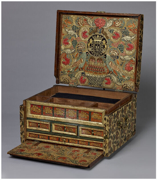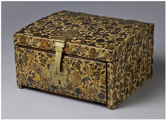 | 6. | The public collections include The Hispanic Society of America, NY (LS2067, LS 2446); Blanton Museum of Art, Austin, TX (2018.351) https://blanton.emuseum.com/objects/22542/coffer?ctx=c4a45705ff07ca4bd87f7a75d5d25b0b7586f0dc&idx=3 (accessed on 6 July 2024); Los Angeles County Museum of Art, Los Angeles, CA (M.2008.34); Victoria and Albert Museum, London (W.5-2015, W.7-2018); and Museo de America, Madrid (inv. no. 06775). |