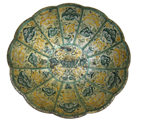 Most recently, further work on the V&A collection has identified a lobed dish with decoration of a similar character, which was acquired in 1876 (V&A: 238–1876, Figure 2).6 This is almost certainly decorated in barniz de Pasto but that cannot be verified while the piece is inaccessible during the museum’s exceptional transfer of its vast London store. The dish seems to have formed part of an English collection of decorative arts formed in the first half of the nineteenth century. At the time of acquisition, it was regarded as ‘Turkish or Persian’.