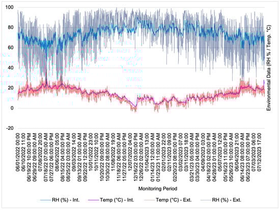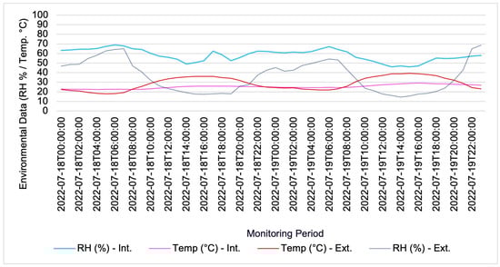 Environmental monitoring is a reliable way to assess historic building performance in a changing climate. In order to have a quantifiable measure of the internal gains of a property, capturing temperature and relative humidity (RH) data in each of the three properties was a necessity. Of the three properties, the authors set up two data loggers in two of the buildings, with the other property having already been capturing the data prior to this study being conducted. Table 1 illustrates the data collection period. Tinytag Ultra 2 Temperature Loggers (TGU-4017) were utilised, as they are most suited to monitor internal environments where there is little moisture. The loggers recorded temperature and RH every hour, 24 h a day. The loggers were placed in two different locations due to the differing overheating thresholds, as per the CIBRE criteria. External environmental data were also collected in the three different locations 24 h a day for the same time periods that the internal loggers were recording.