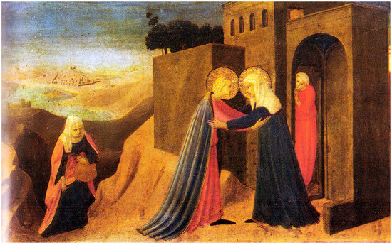 Beato Angelico, Visitation (tempera on panel, 1430, Museo Diocesano in Cortona) (credits: Beato Angelico, public domain, from Wikimedia Commons).