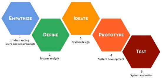 Design–thinking approach and system development (adapted from []).