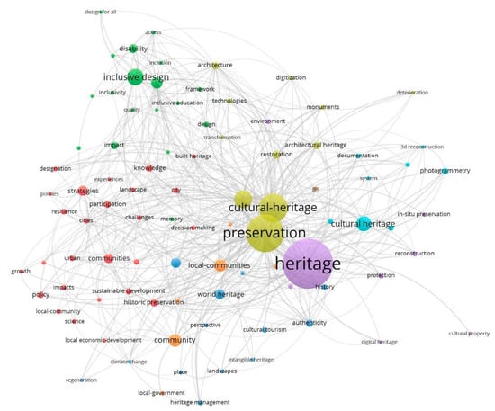 Co-occurrence of the keywords in the existing research in heritage conservation and urban accessibility.