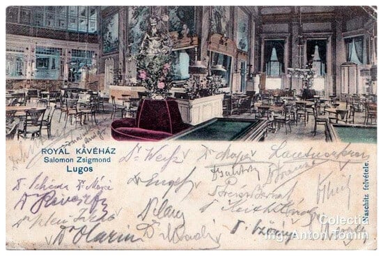 - Gaidoș, O. Clădirea cofetăriei “Liliacul”—Cafeneaua “Royal”; Monitorul de Lugoj: Lugoj, Romania, 2014; Volume 65, p. 8. (In Romanian) [Google Scholar]