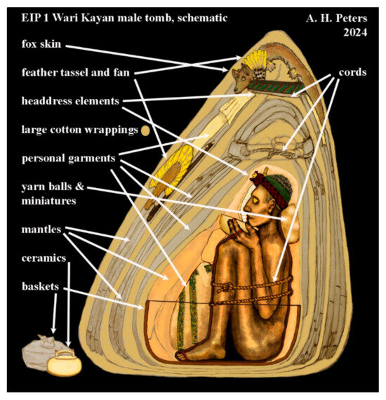 Schematic diagram of an Early Intermediate Period 1 Wari Kayan funerary bundle. Image by A.H. Peters, 2024.