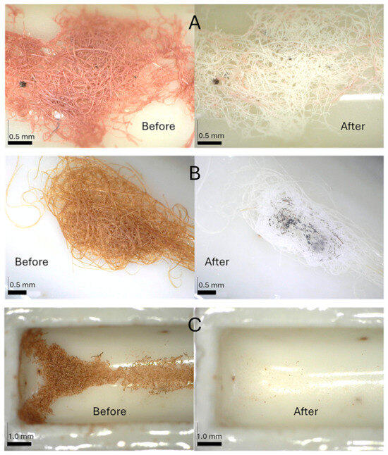 - Diaz-Granados, K.S.; Bergemann, L.J.; Ballard, M.; Newsome, G.A.; Kavich, G.M.; Caldwell, J.D.; Cleland, T.P. Investigation of Natural Dyes and Taxonomic Identification of Fibers Used in Chancay Textiles by Vibrational Spectroscopy and Mass Spectrometry. J. Proteome Res. 2025, 24, 710–728. [Google Scholar] [CrossRef]