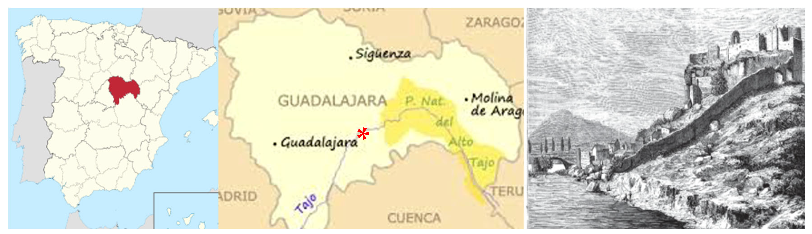 - Urbina, D.; Urquijo, C. El Castillo de Zorita (Guadalajara). Historia y Arqueología; El Tercer Sello: Madrid, Spain, 2022. [Google Scholar]