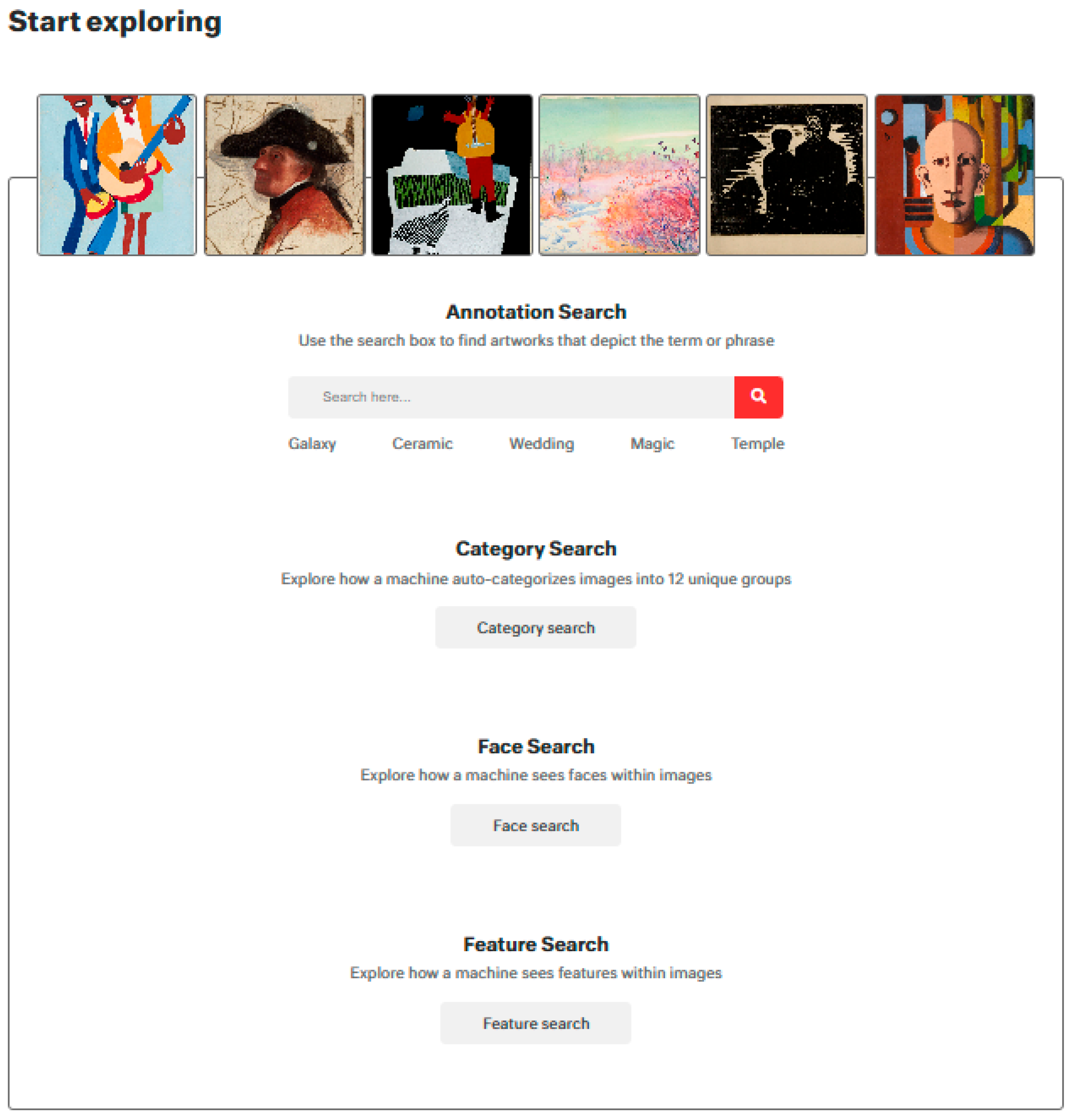 - Harvard Art Museums. Explore. AI at Harvard Art Museums. 2025. Available online: https://ai.harvardartmuseums.org/explore (accessed on 31 March 2025).