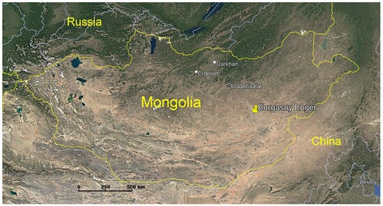 Map of Mongolia indicating the location of the Burgasny Enger site.