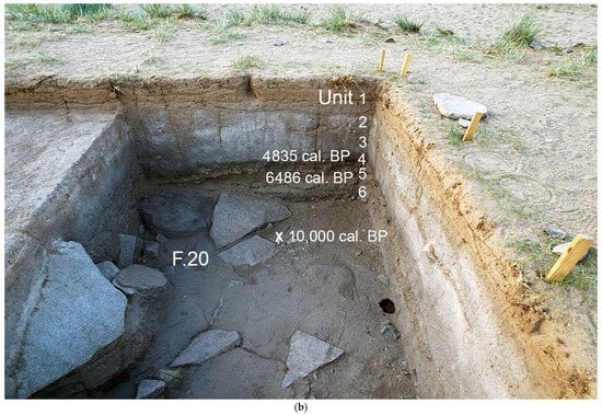 - Zhao, C.; Janz, L.; Bukhchuluun, D.; Odsuren, D. Neolithic pathways in East Asia: Early sedentism on the Mongolian Plateau. Antiquity 2021, 95, 45–64. [Google Scholar] [CrossRef]