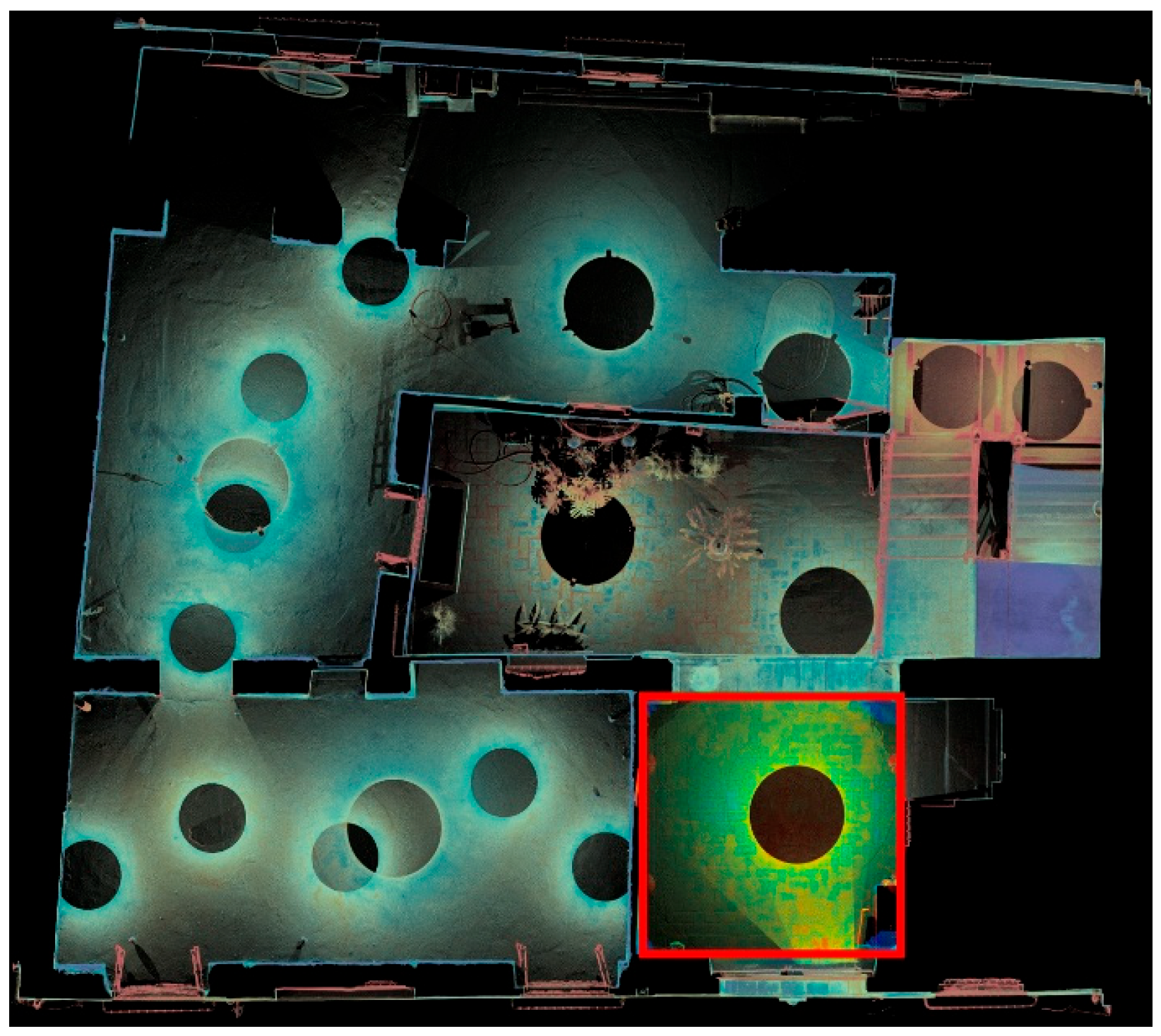 14. Martínez-Espejo Zaragoza, I. Técnicas de levantamiento con escáner láser del patrimonio arquitectónico. Hipótesis y restitución virtual de la bóveda de una iglesia. In Proceedings of the XXII Jornadas de Patrimonio Cultural de la Región de Murcia, Cartagena, Spain, 4 October–8 November 2011; pp. 275–284. [Google Scholar]
