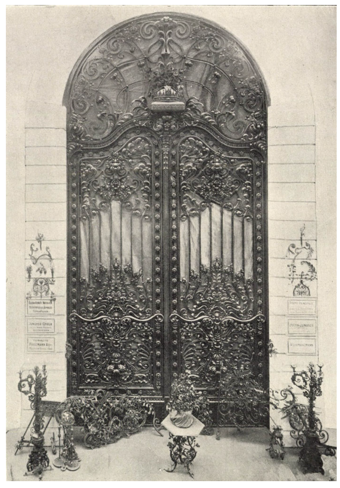 - Edvi, I.A. Vasművesség a Párisi Nemzetközi Kiállításon. Magy. Iparművészet 1900, 3, 305–325. [Google Scholar]