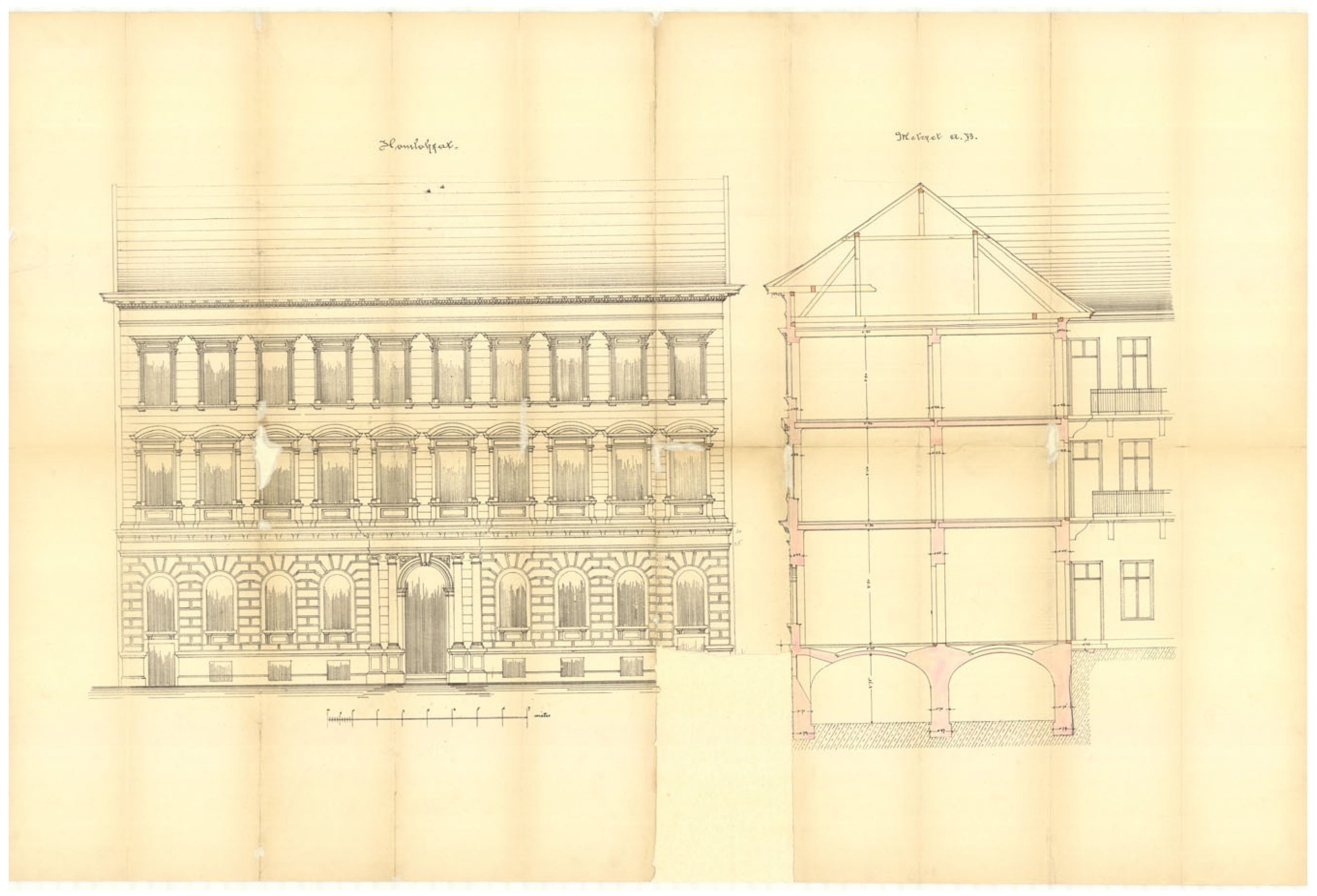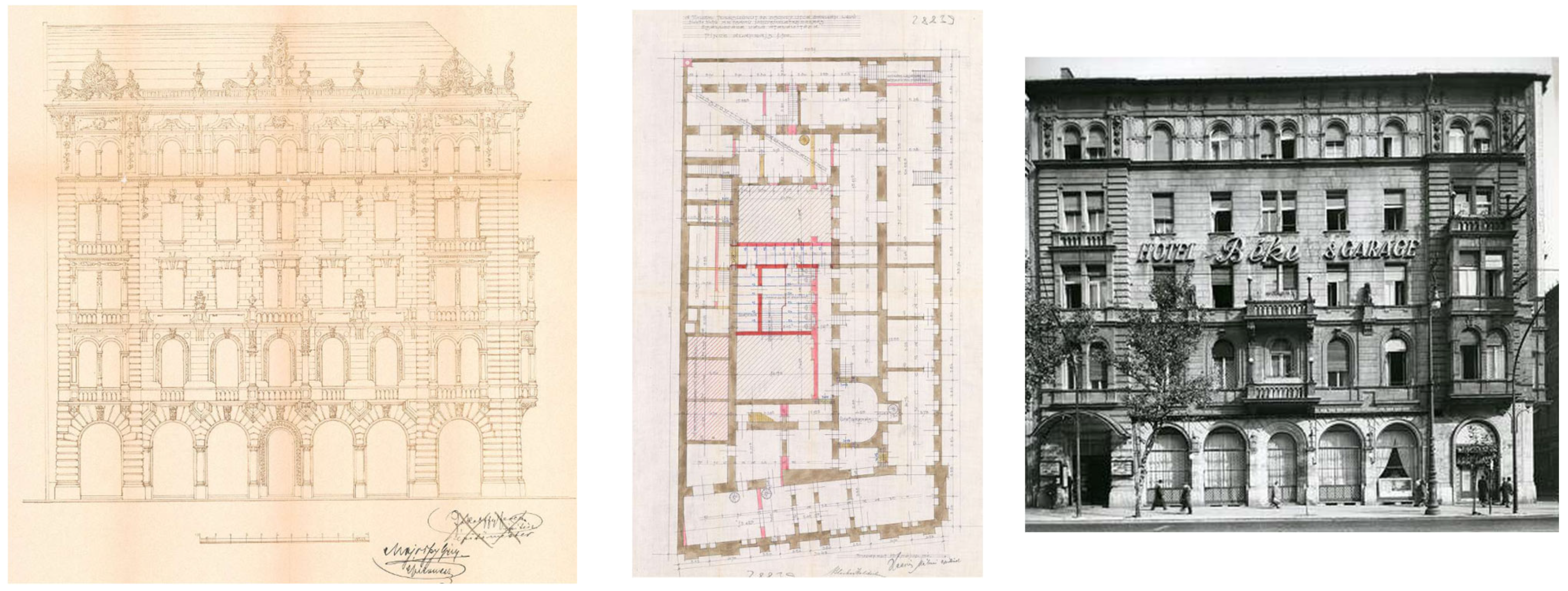 Façade of the courtyard | Missing courtyard elevation | Floor plans, sections | Modeled without decorative elements | Positions, geometric properties from floor plans | Typical approach within the course |