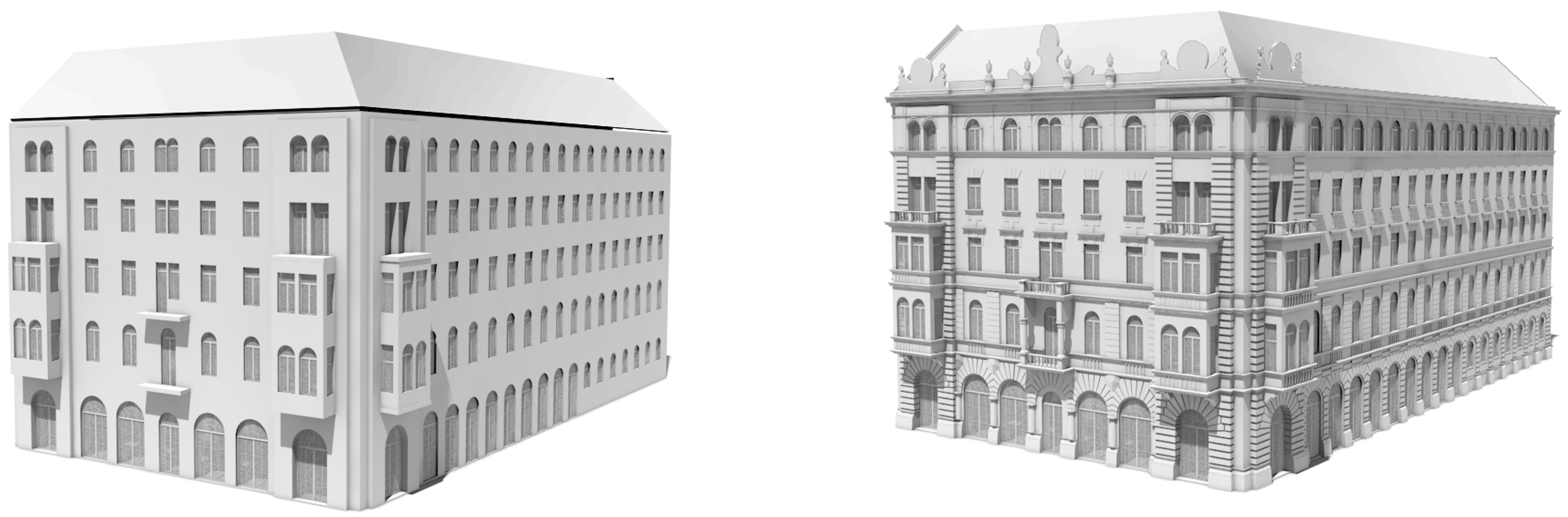 - In the final modeling stage, these decorative elements are placed onto the façades of the building (see Figure 6).