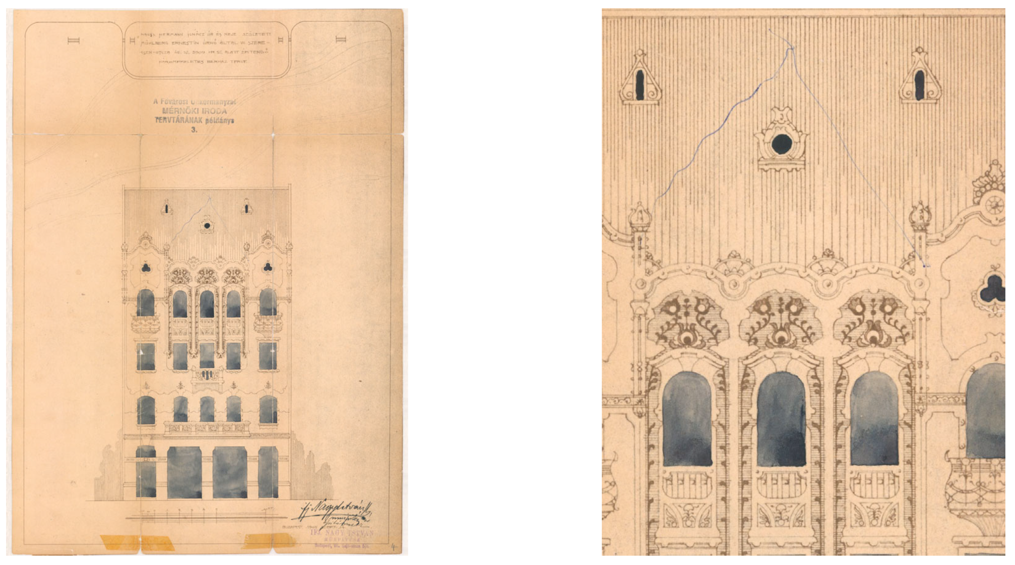 - Online Plan Repository: HU BFL—XV.17.d.329—33482/2. Available online: https://maps.hungaricana.hu/hu/BFLTervtar/30225/ (accessed on 12 October 2025).