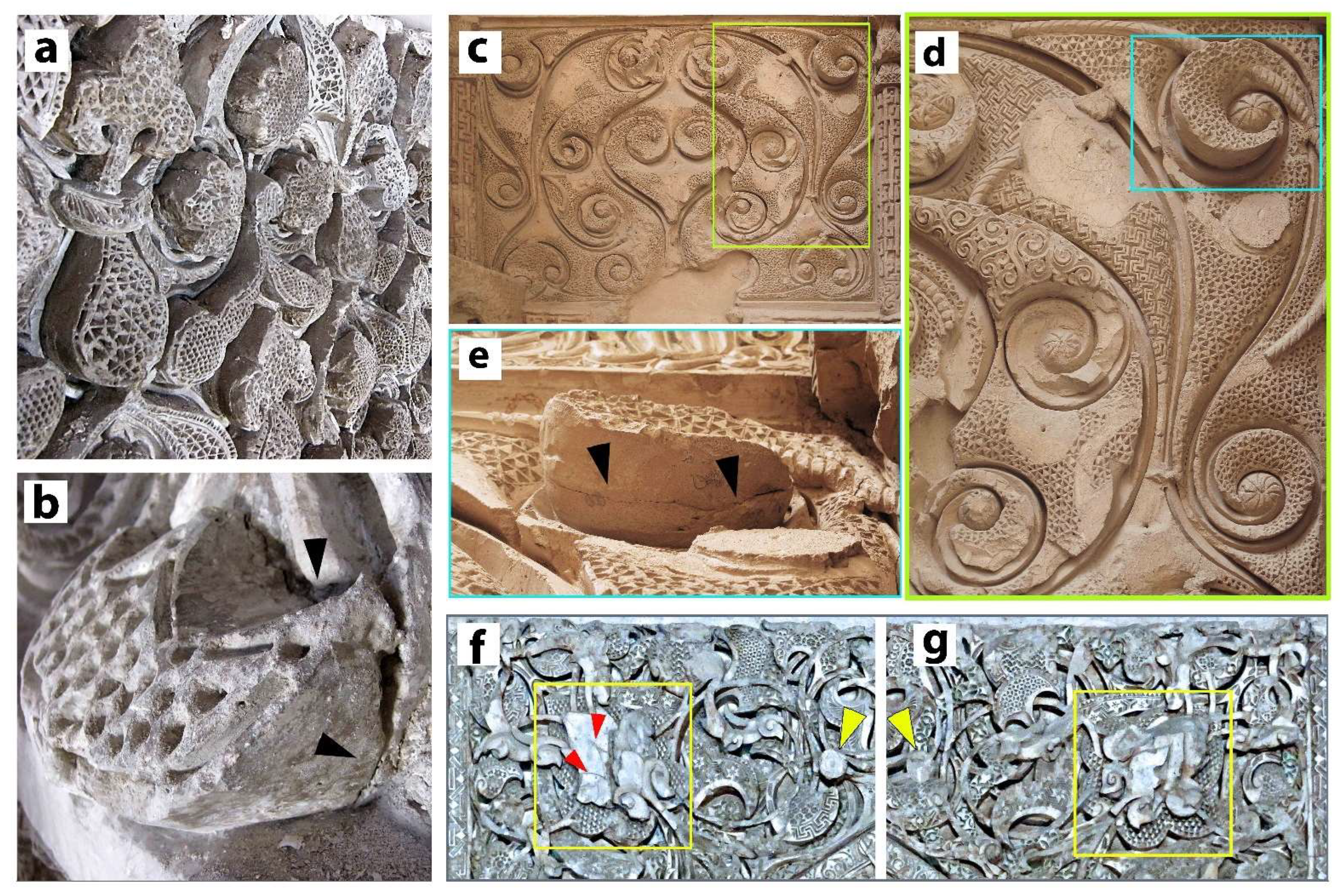 Unlike molded traditions, such as those of Sāmarrā (style C) [4] or al-Andalus (e.g., the Alhambra1) [7], Iranian stucco was executed largely in situ through hand-carving (Dar-jā)2.