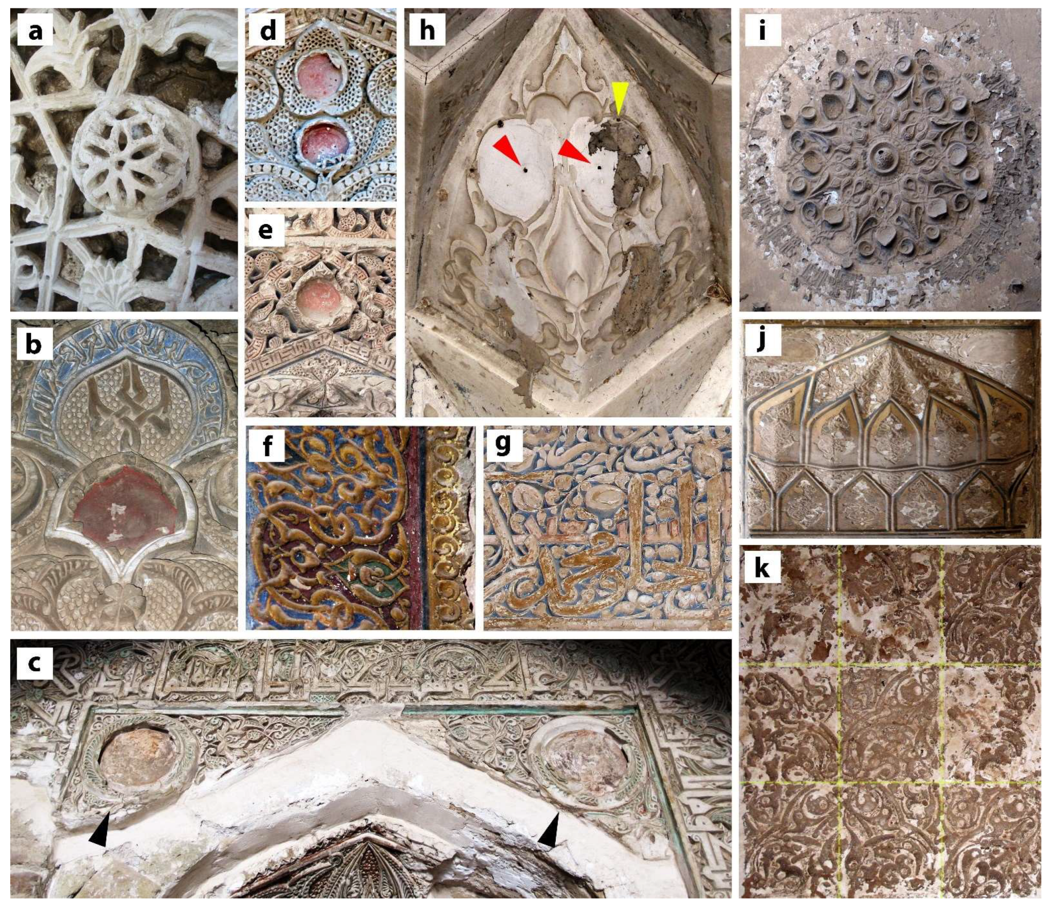 Scientific investigation could also be used as a complementary method to chronological evolution studies. Scientific research could benefit from the application of non-invasive analytical techniques to investigate the material composition and stratigraphy of stucco decorations. Where appropriate, the collection of small, targeted samples for laboratory analyses could further elucidate the composition of plasters, pigments, and binding media. Such approaches would not only help differentiate regional workshops and chronological phases but also provide valuable insights into manufacturing practices, including plaster preparation, layering sequences, carving methods, and surface treatments. This combined material and technological perspective would clarify both similarities and divergences in stucco production between the Seljuq, Ilkhanid, and subsequent periods.
