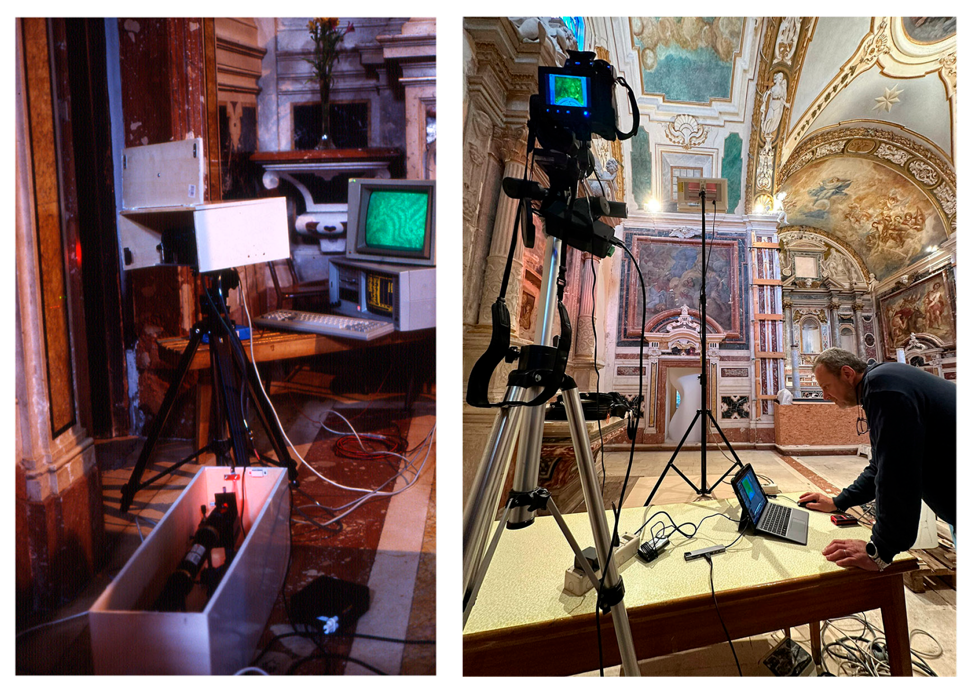 - Paoletti, D.; Schirripa Spagnolo, G. Application of fibre optic digital speckle interferometry to mural painting diagnostics. Meas. Sci. Technol. 1993, 4, 614–618. [Google Scholar] [CrossRef]